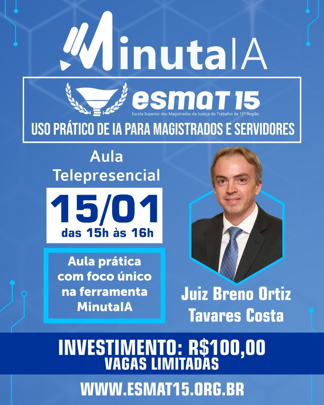 Na última quinta-feira, 15/01, mais de 200 pessoas, entre magistrados e assistentes, participaram do curso prático da ESMAT 15 sobre Inteligência Artificial, focado na plataforma “Minuta IA”. A ferramenta foi desenvolvida especificamente para a atividade jurídica.